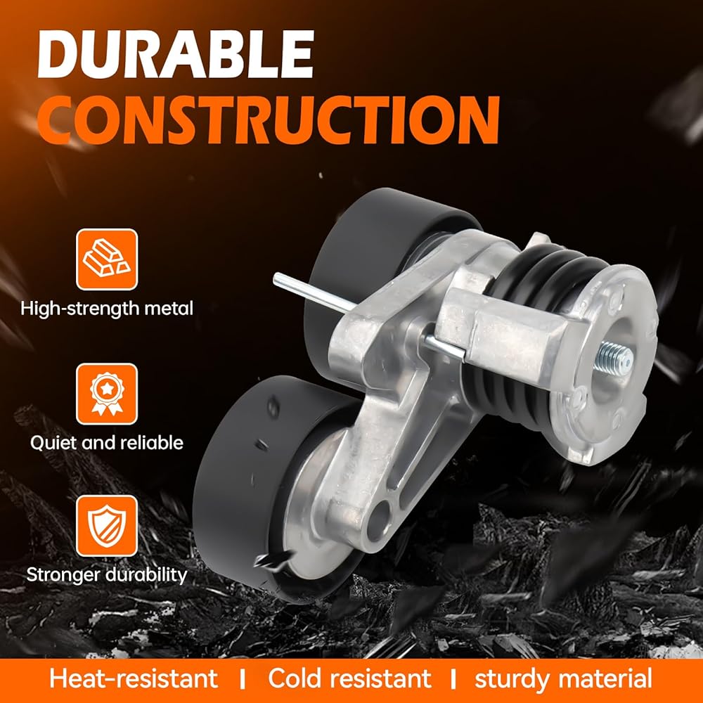 High-Quality Materials: Constructed with high-strength mental and heat-resistant thermoplastic, this belt tensioner resists wear, corrosion, and under-hood contaminants. Built to withstand extreme temperatures and heavy loads, it is designed for quiet, reliable performance and enhanced durability