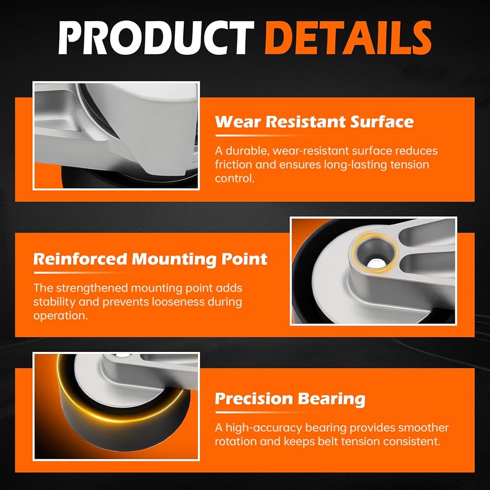 Smooth & Durable Performance: Features a premium bearing system designed to help reduce noise, vibration, and belt slippage. Aids in maintaining proper belt alignment and tension for smoother engine operation and to support extended belt life