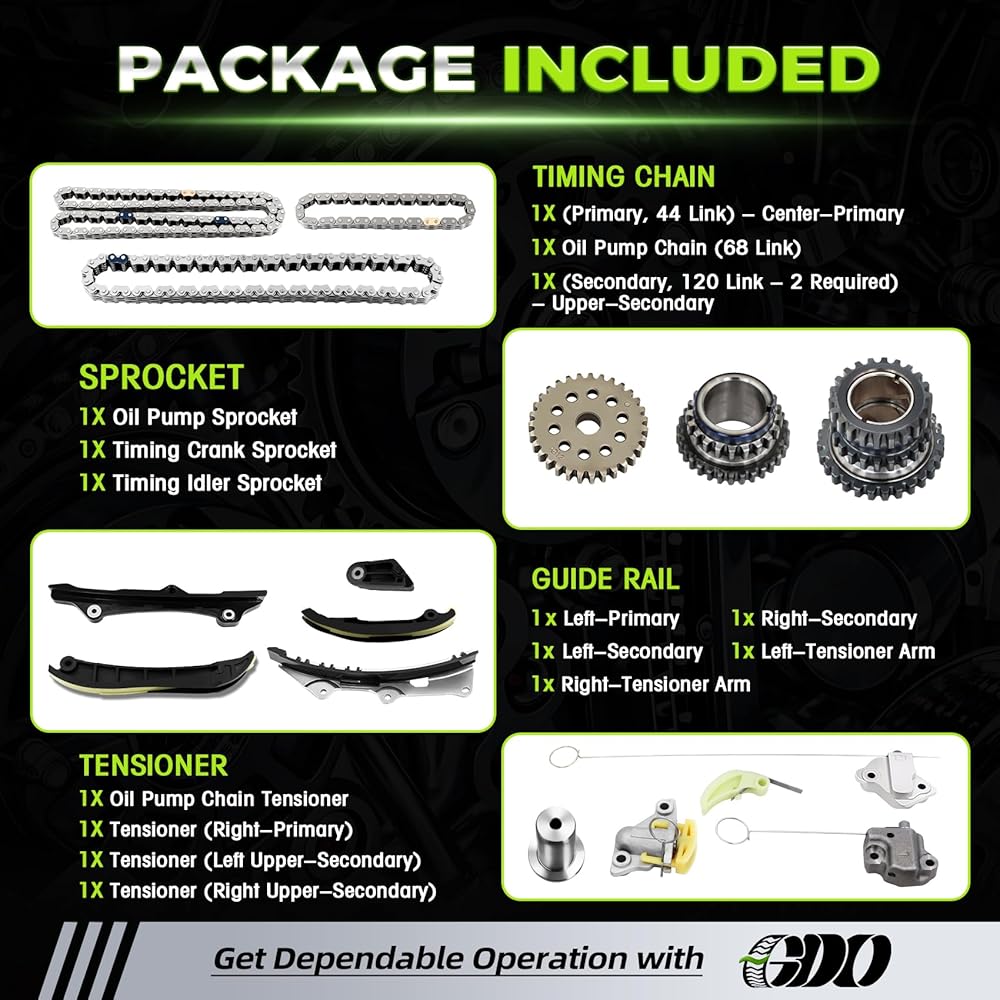 • 【3.6 kit de cadena de tiempo de】:Perfectly replace them on your vehicle. GDO provide this product have 30-day money-back (Refund or replace your purchase without worrying about fees)