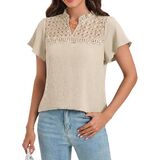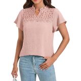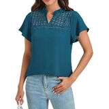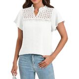 Elegant Design: The lace tops for women feature short ruffle sleeves, a flattering V neck with ruffle collar, and a fashionable eyelet front for a touch of sophistication. The subtle design creates a polished yet dressy look