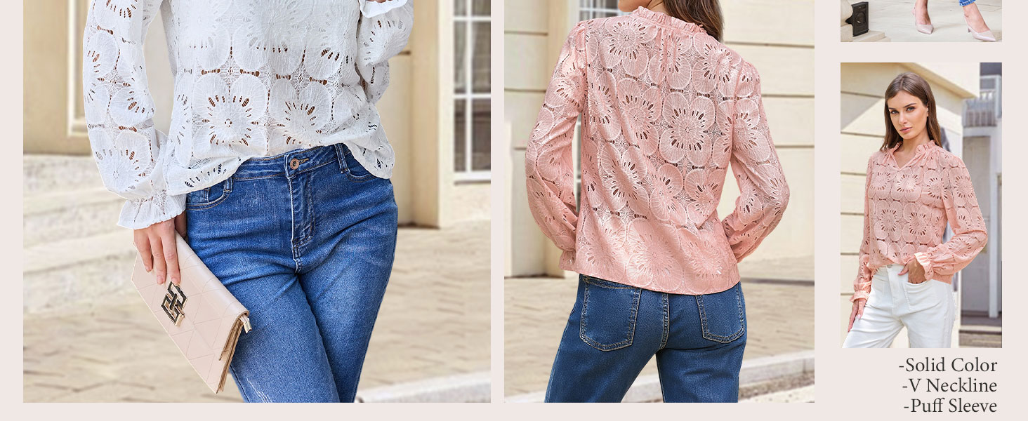 Material: The women's dressy tops are made of delicate lace fabric with floral patterns, skin-friendly and non-itchy, with slight stretch. The lace tops are unlined and might be a little see-through, so you could pair them with a camisole or tank.