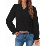Design: The women's blouses feature a chic V neckline, lace fabric, and ruffle design, adding a touch of elegance and a romantic vibe. The bottom is straight, and the length covers the stomach well, so you could tuck it in if you prefer.