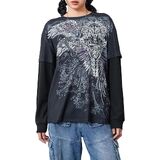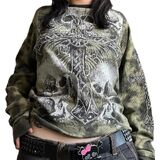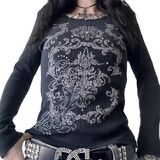 Feature: Long sleeve, v neck, sword & wings print, slim fit, basic length. Long sleeve tops for women, streetwear tops, pull-on closure, easy to put on and take off.