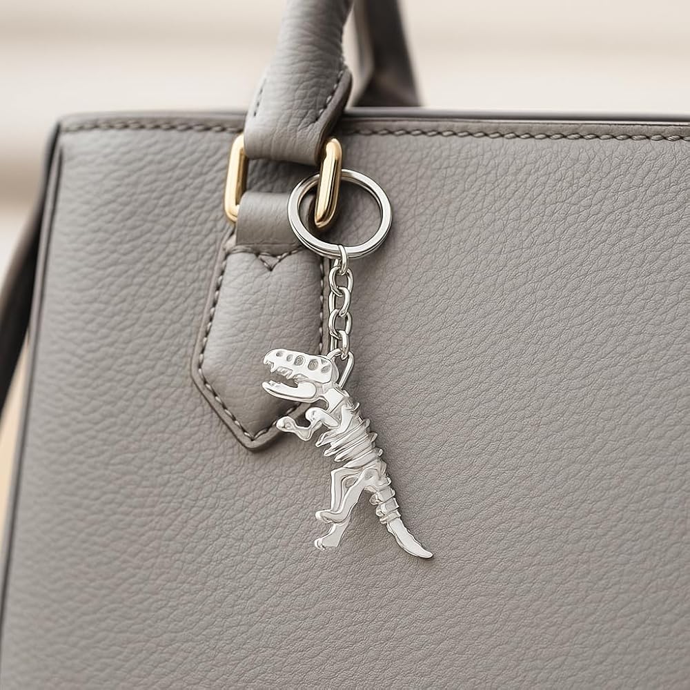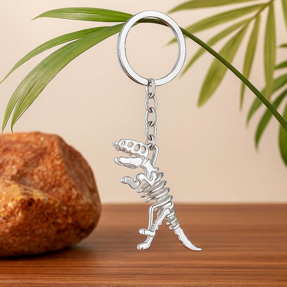 Step back in time and carry a piece of prehistoric power with our incredibly cool T-Rex Skeleton Keyring – a truly unique Bag Charm for Women that captures the awe of the Jurassic era. This isn't just an ordinary keychain; it's a meticulously crafted miniature fossil, presenting the fearsome Tyrannosaurus Rex with breathtaking accuracy. Every bone, from its menacing skull to its intricate spine and powerful limbs, is precisely rendered in a stunning silver-tone appearance, creating a realistic and scientific aesthetic. This key charm transforms your everyday essentials into a display of ancient wonder, instantly adding a fierce and distinctive touch to your keys, handbag, or backpack. Perfect for dinosaur enthusiasts, budding palaeontologists, or anyone who appreciates a blend of educational curiosity and bold, individual style, this T-Rex Skeleton Keychain makes an exceptional gift. Imagine the delight on the face of a loved one receiving this as a birthday surprise, a Christmas stocking filler, or a thoughtful 'just because' present. It's a fantastic way to celebrate their passion for dinosaurs and unique accessories. Elevate your personal flair and let your love for prehistoric creatures shine with this cool, conversation-starting Bag Charm for Women, making a statement wherever your adventures take you.