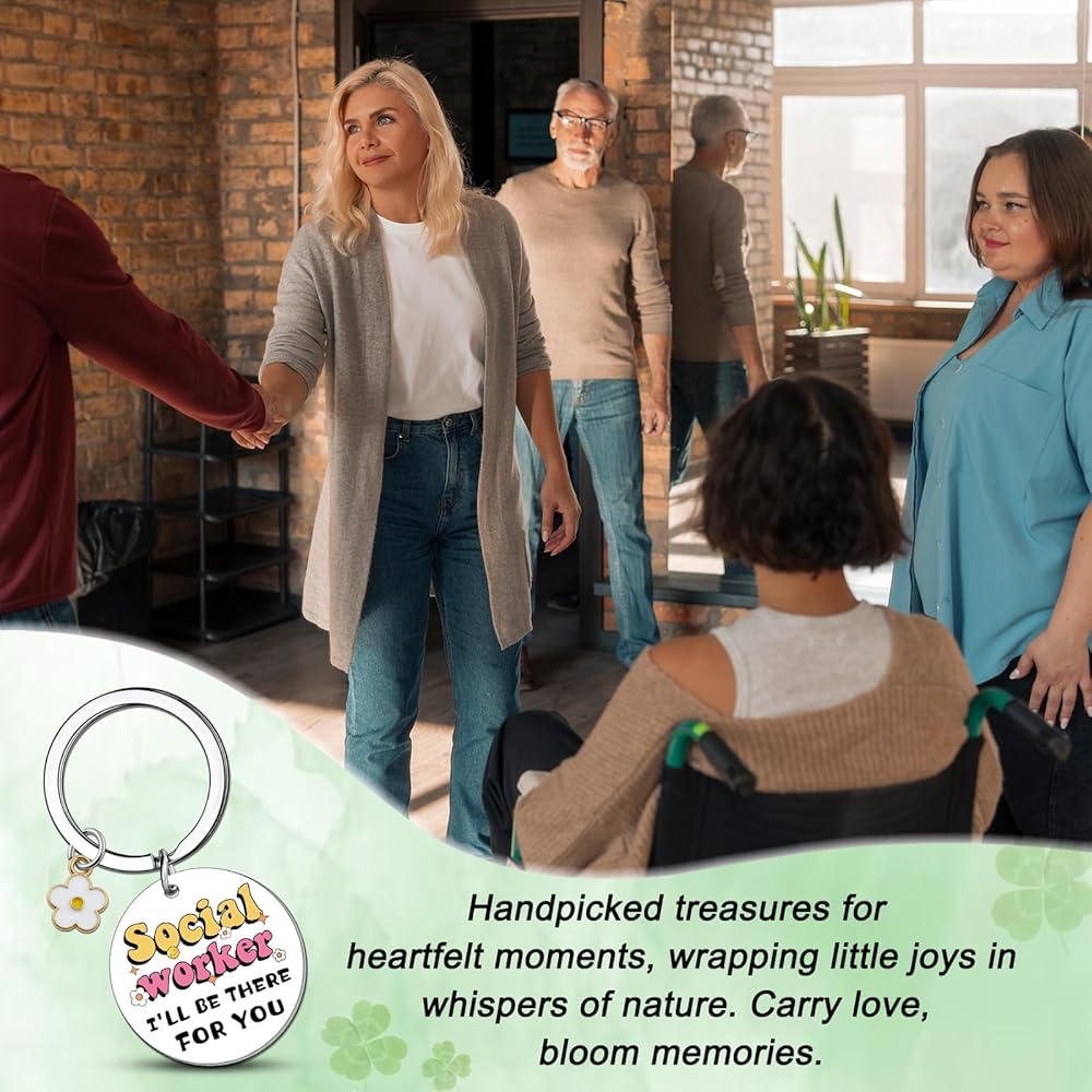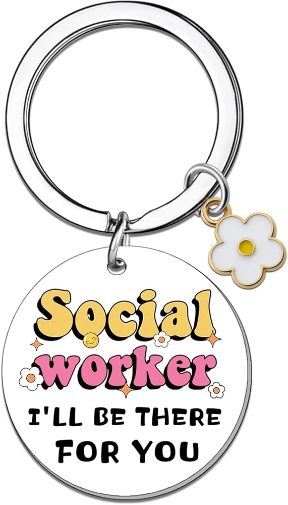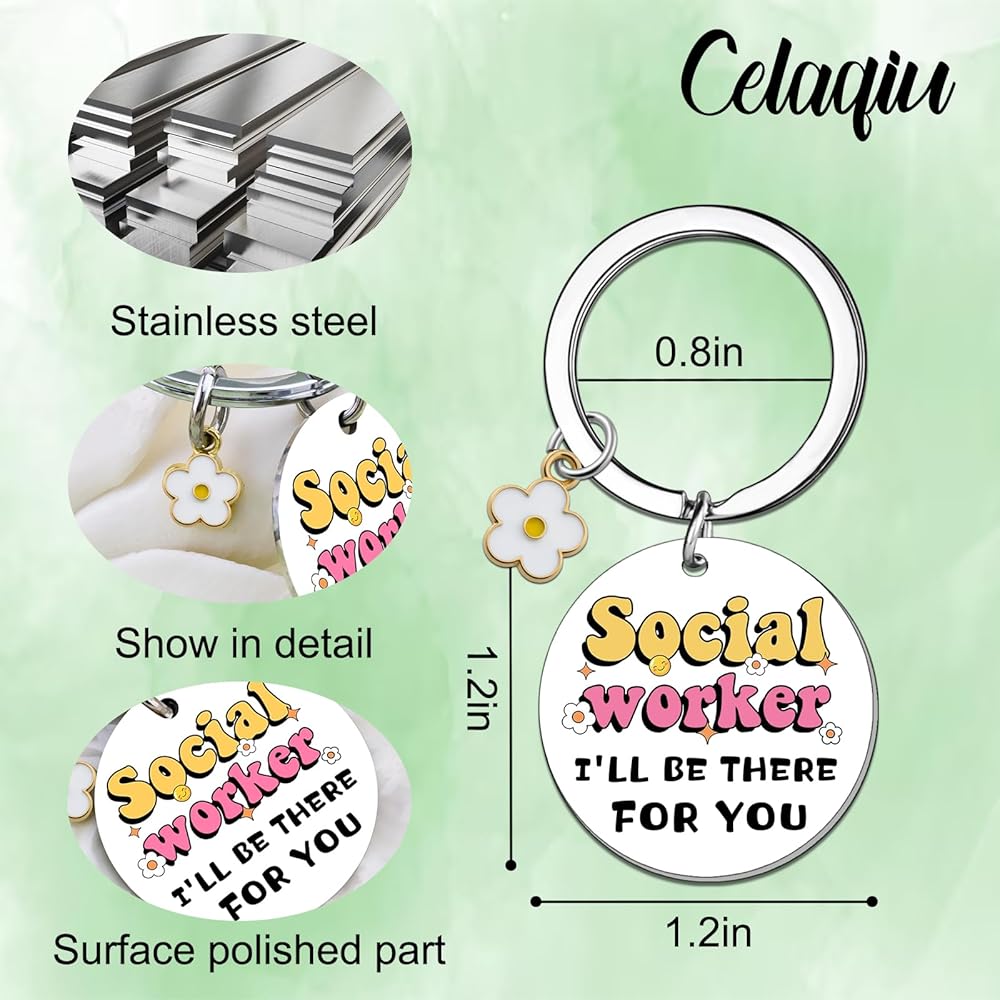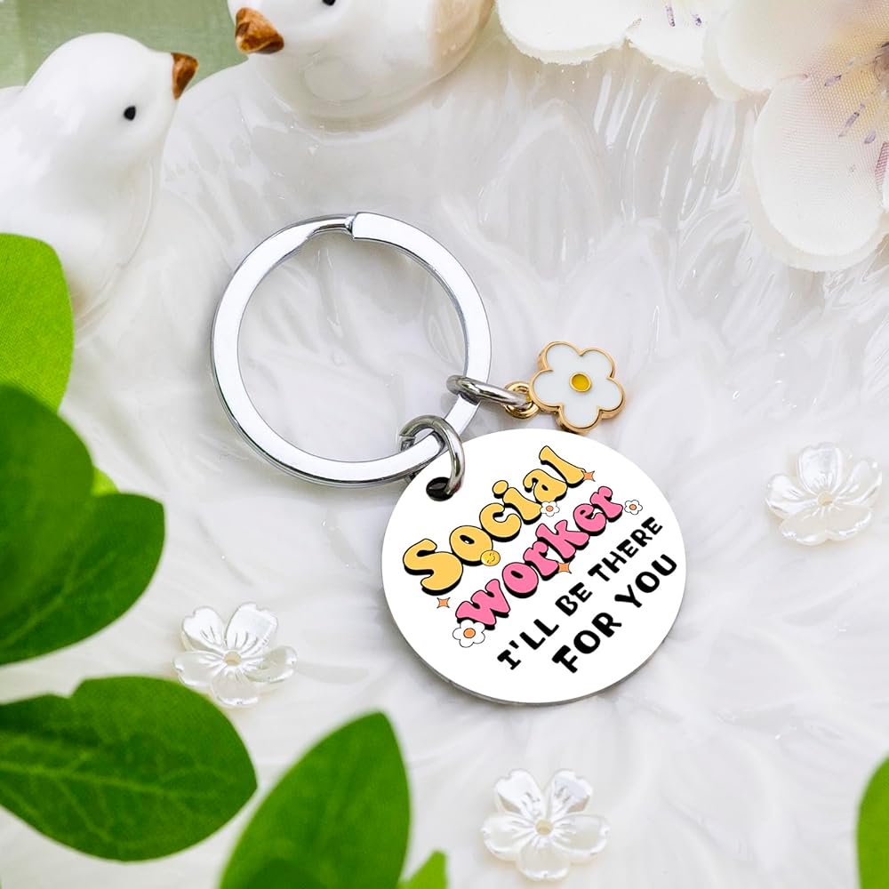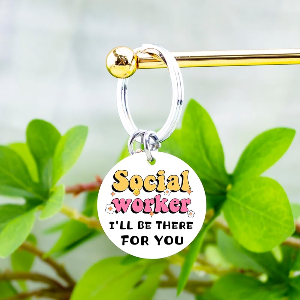 Funny Social Worker Gifts: The social worker keychain features the engraved message "SOCIAL WORKER I'LL BE THERE FOR YOU", symbolizing unwavering support and dedication. Perfect for social workers who devote themselves to helping others, it serves as a daily reminder of their impactful role and the gratitude they deserve. The minimalist silver design exudes professionalism and elegance.