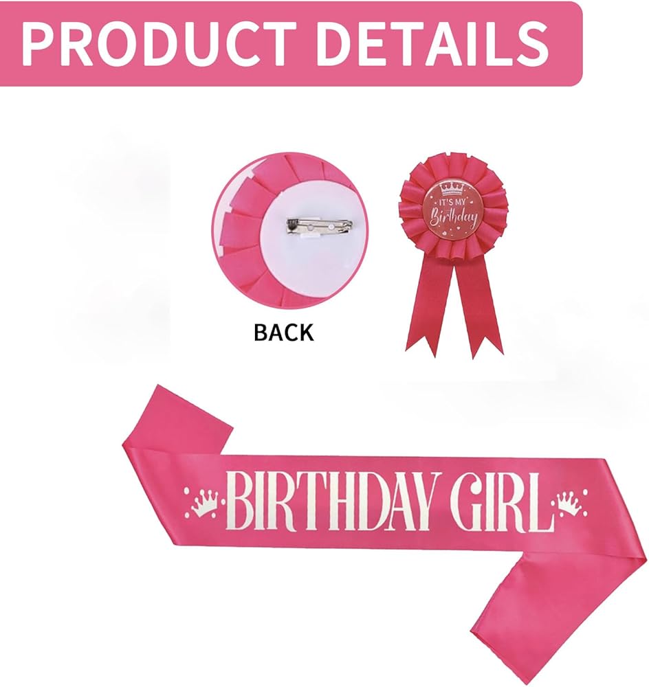 Complete Birthday Set: This vibrant set includes a pink premium birthday pin and a matching Birthday sash, providing everything you need to stand out and feel special on your big day.