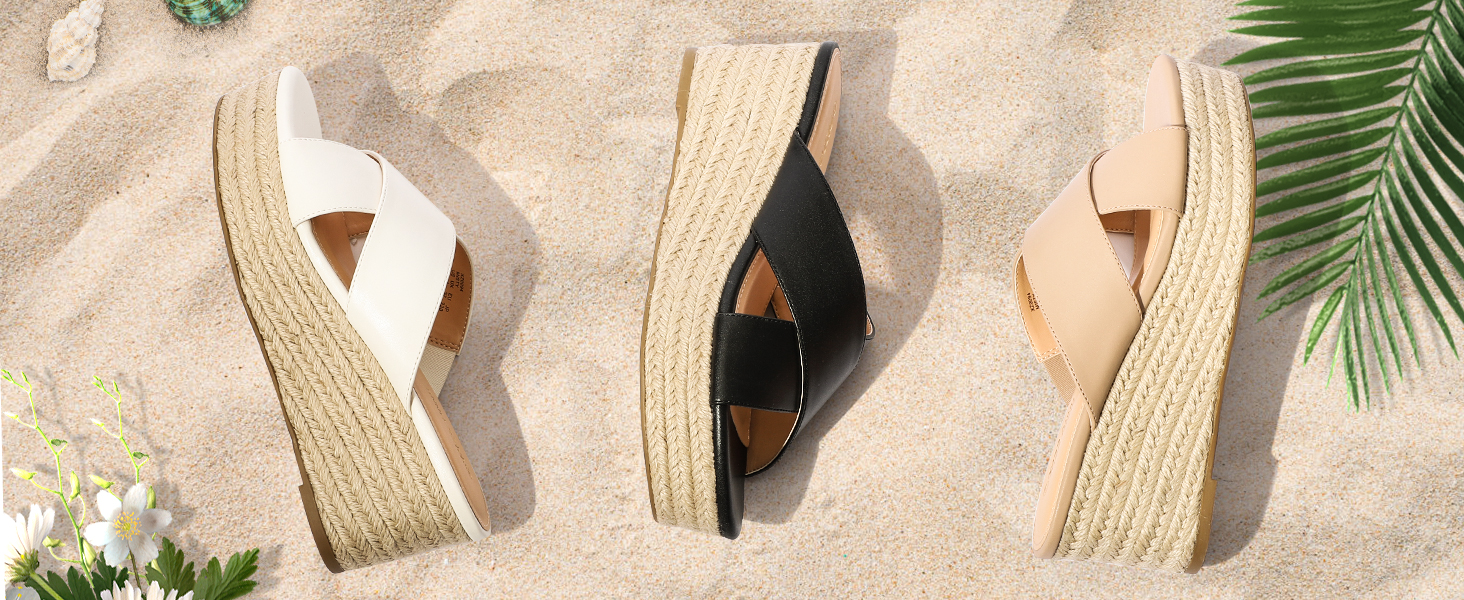 WEDGE PLATFORM: 1.3 inches platform and 2.5 inches heel espadrille wedge features with great slope which follow the curve of your foot to provide a great walking experience and give you a few height to your figure without any discomfort.