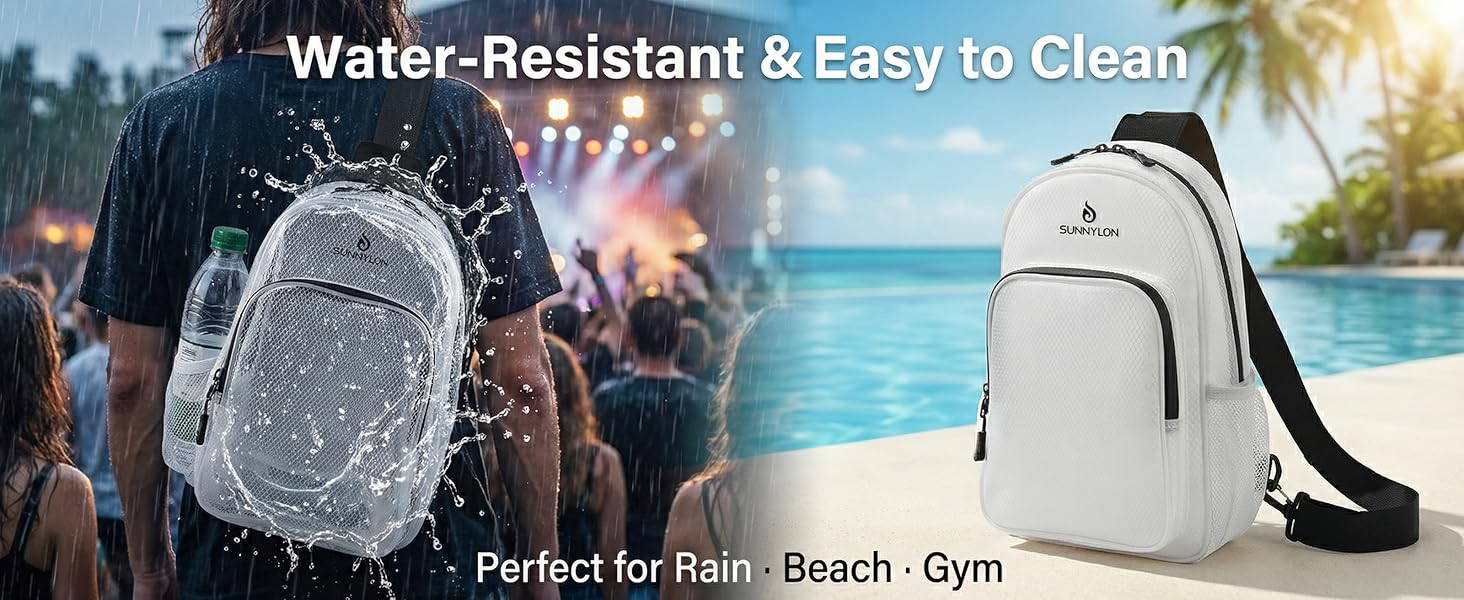 ⭐ Water-Resistant & Easy to Clean TPU material is naturallywater-resistant, perfect for unpredictable weather, commuting, travel, beach or pool days. Sand, water and dirt can be easily wiped off, keeping the bag clean with minimal effort.