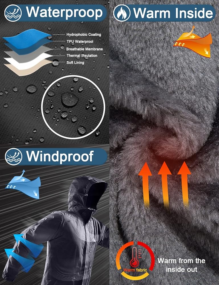 Warm & Durable Snow Jacket: Outer shell fabric is durable & wear-resistant, the inner soft fleece lining is thick enough to keep you warm and comfortable during the cold winter yet breathable to wear. The stitching is reinforced,solid enough to wear for years.
