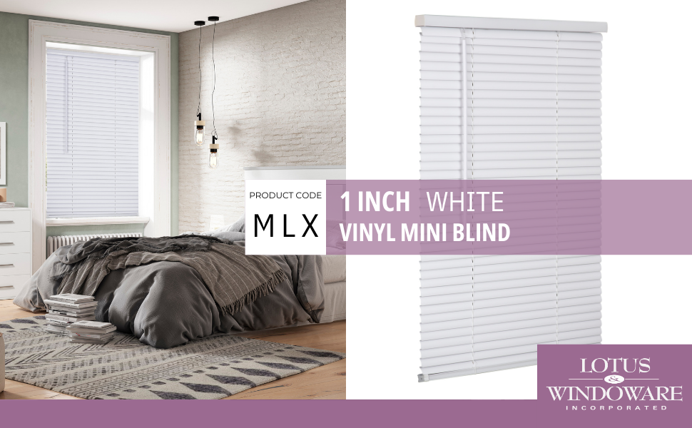 LOTUS & WINDOWARE Cordless Mini Blind, 1" Vinyl Slats, 57" Wide x 84" Long - White, Window Blinds for Home and Office, Interior Door Blinds - Light Filtering