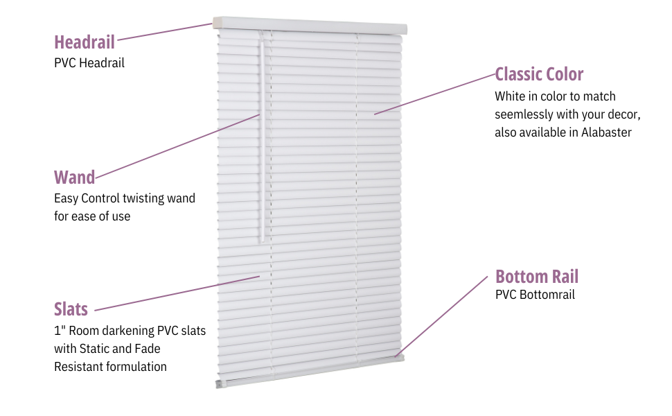 Includes Hardware & Instructions: Vinyl mini blinds add style and privacy to your home. Durable and affordable, they fit living rooms, bedrooms, kitchens, and offices. Ideal for home, door, camper, and RV blinds. Includes instructions and hardware for inside or outside mounting.