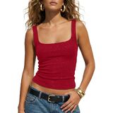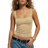 Trendy Clothes: There are clean fit silver metallic crop tank tops, premium gold shimmer strappy tank, retro trendy nude glitter square neck cami, red going out shinny tops, vintage royal blue sparkle party outfits for 2026 summer, spring yet fall trendy matching