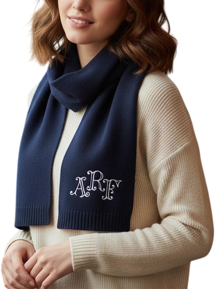 The Grewear Embroidered Knit Scarf is a cozy and stylish winter accessory made from soft acrylic yarn, designed to keep you warm and add a personal touch to your outfit. This scarf features an embroidered monogram that can be customized with initials or names, making it a perfect personalized gift for Christmas, birthdays, and other special occasions.