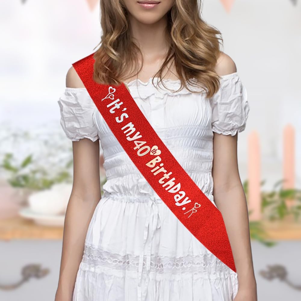 【Package】: 1 x "It's my 40th birthday" Sash, 1 x Rhinestone Crown, 1 x Pin.