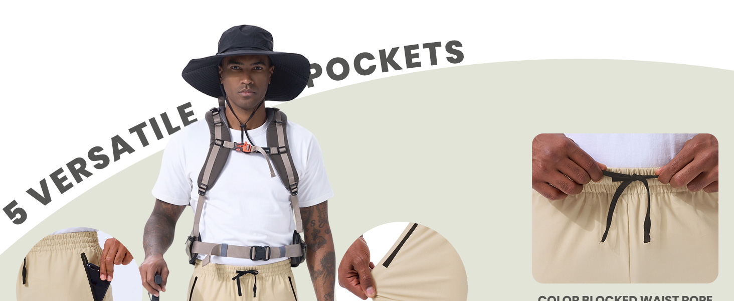 Elastic Waist with Drawstring: Quick dry pants men featuring an elastic waistband and adjustable drawstring provide a customized and snug fit for all body types. The elastic waist offers flexibility and ease of movement, while the drawstring allows you to tighten or loosen the waist as needed, eye-catching contrasting drawstring and zipper