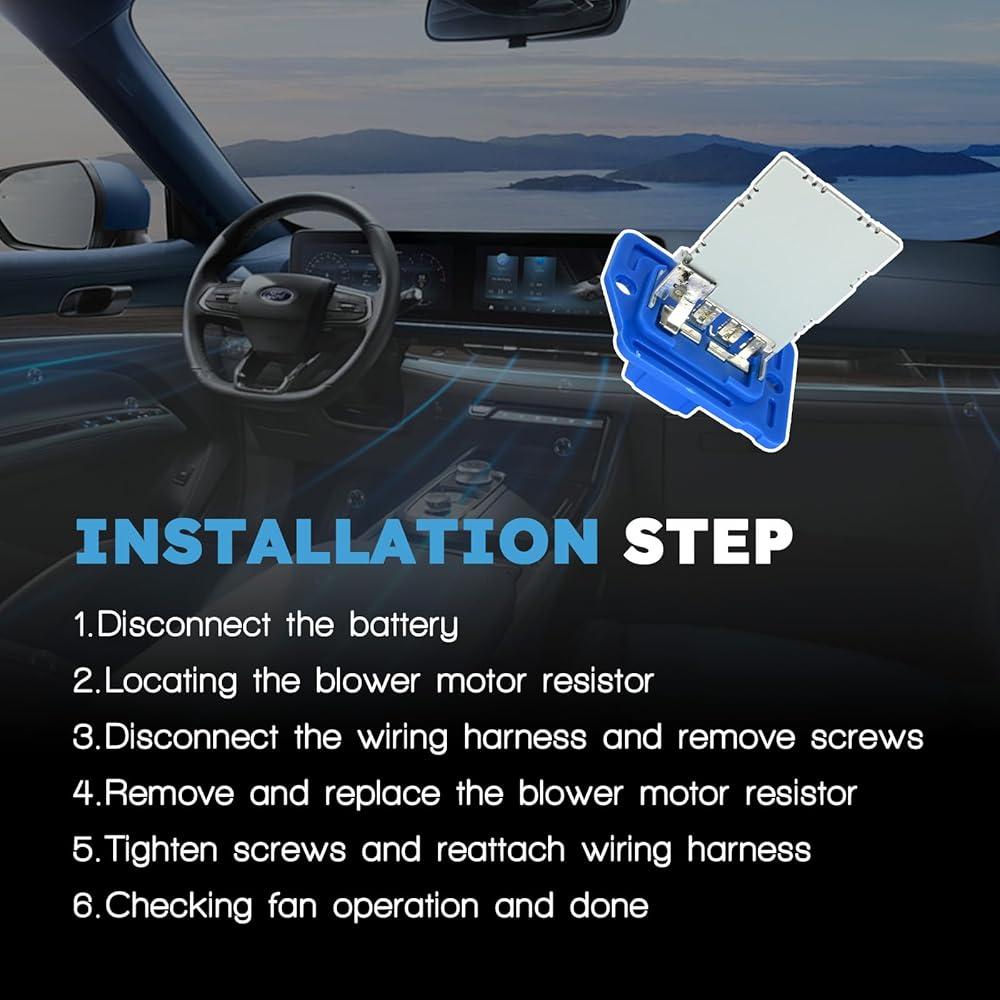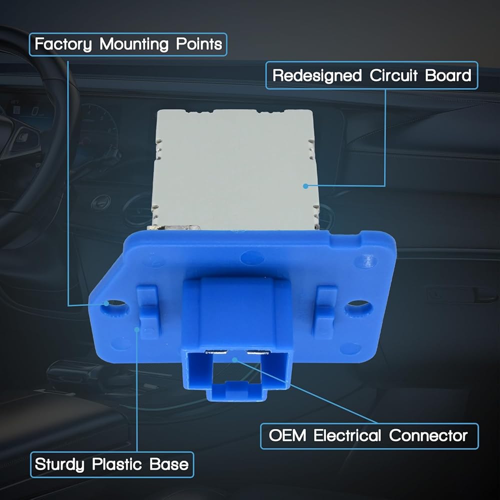 【Fitment】: HVAC Blower Motor Resistor fit for Hyundai Accent 2002-2019, Santa Fe 2019-2023; Fit for Kia Telluride 2020-2024【Replace Part Number】: HVAC Blower Control Module Replaces# 970351C000 970351C010 970351E000 970351E100 --- Before purchasing this HVAC fan motor resistor, please enter your vehicle【High Quality Materials】: This air conditioning blower motor resistor is made of durable copper interface and aluminum column, which has the advantages of impact resistance, heat resistance, and aging resistance. It can prevent poor connection, prevent excessive current from burning out the blower, ensure efficient operation, and extend service life.【Function】: The blower motor resistor controls the fan speed of the blower motor by changing the resistance. If your blower motor is stuck at a certain speed and the fan does not work under certain settings, the vehicle ventilation port will not blow air. This blower motor resistor can perfectly solve this problem.【Package Includes】:1 X HVAC Blower Motor Resistor, 1 X AC Blower Control Module Wire Harness