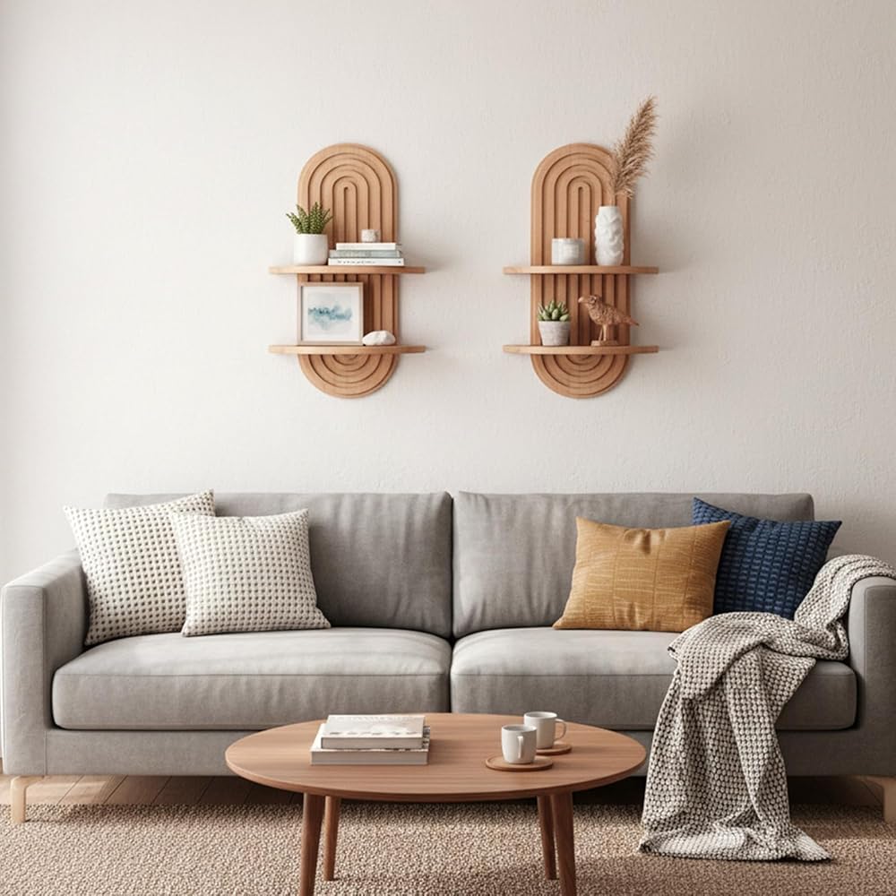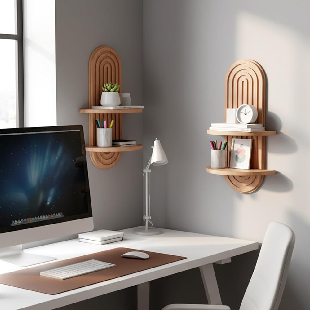 【Bohemian Wall Decor】Designed in a mid century Bohemian style, these 2 pcs arch wooden rainbow boho wall shelves measure an ideal size of about 16.9 x 9 inches/ 43 x 23 cm; The retro color and texture cutting make them the ideal decor for living room or bedroom