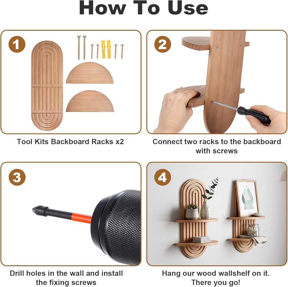 【Easy to Install】Boho wooden wall shelf effortless installation for all wall types.For solid concrete or brick walls, our boho wall shelves for wall come with necessary nails for installation, and use the remaining nails through the pre existing holes to fix it to the wall without easy break or falling off.