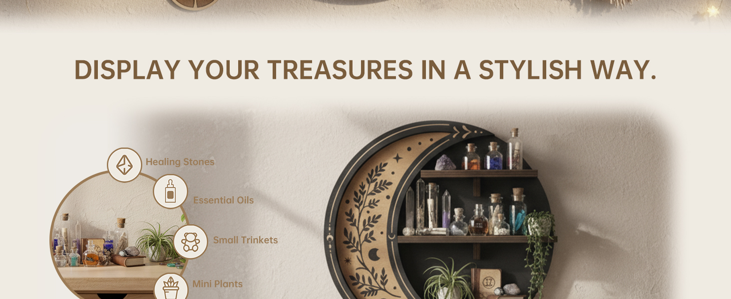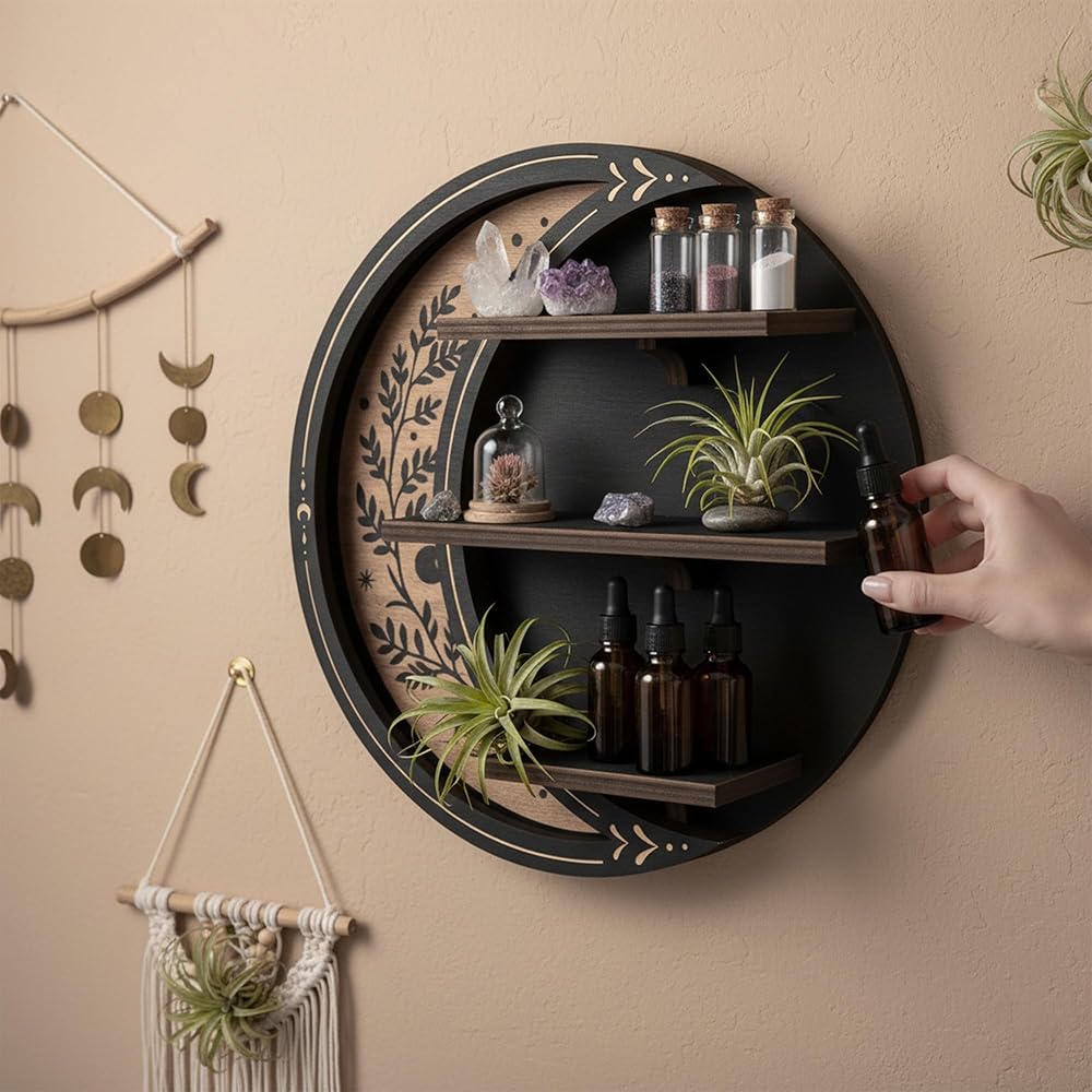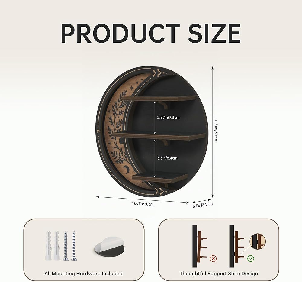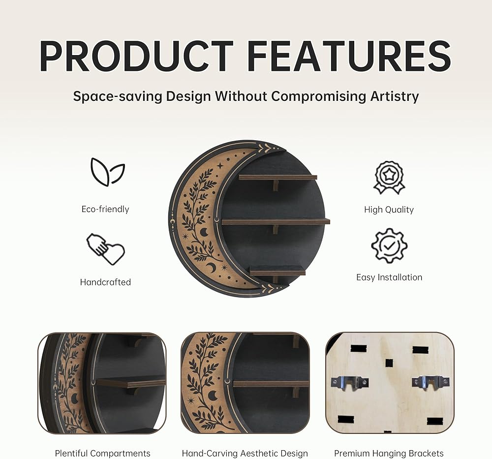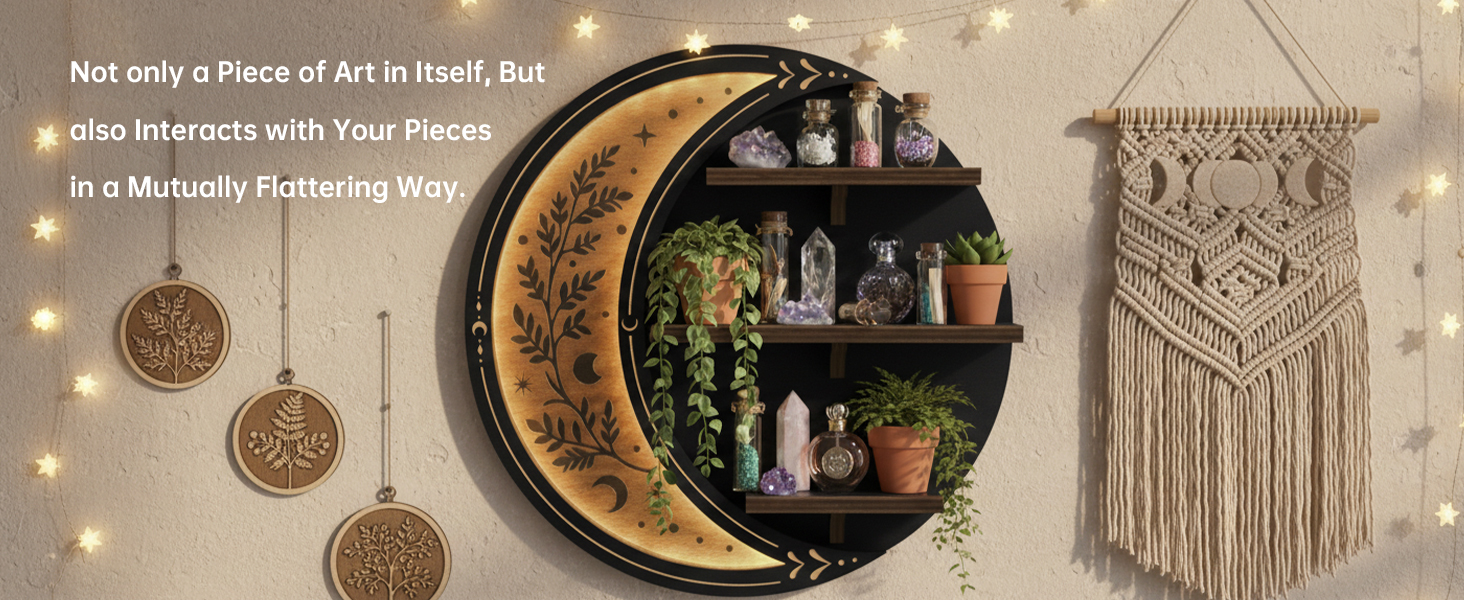 Enchanting Celestial Aesthetic & Witchy Whimsical Vibe - Exquisite crescent moon shape, with celestial mystery and witchy whimsy, suitable for bohemian, gothic and other styles. It is not only a shelf, but also a characteristic decoration to enhance the bedroom style.