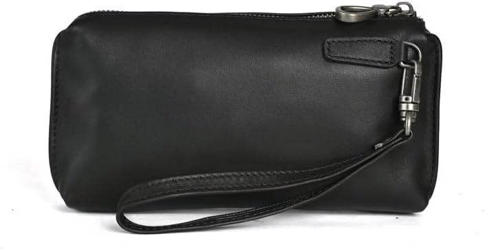 [Sleek Black Vintage Leather] Constructed from genuine leather, this wristlet clutch features a classic black vintage finish that resists scratches and develops a unique patina over time A stylish choice for the modern man
