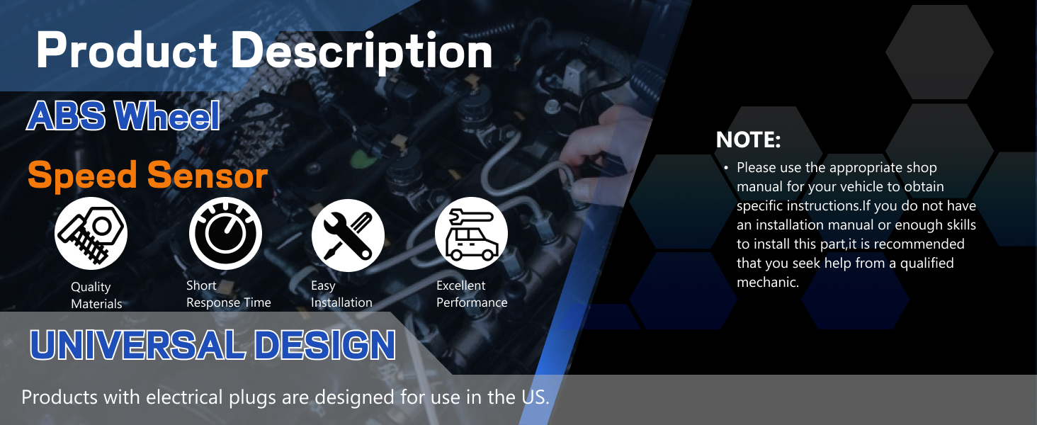 [OEM Quality] Designed to match original equipment specifications, this ABS wheel speed sensor helps provide accurate wheel speed readings to support proper braking performance. Made from quality materials and tested for reliability, it offers a precise fit and easy integration with your vehicle's ABS system.