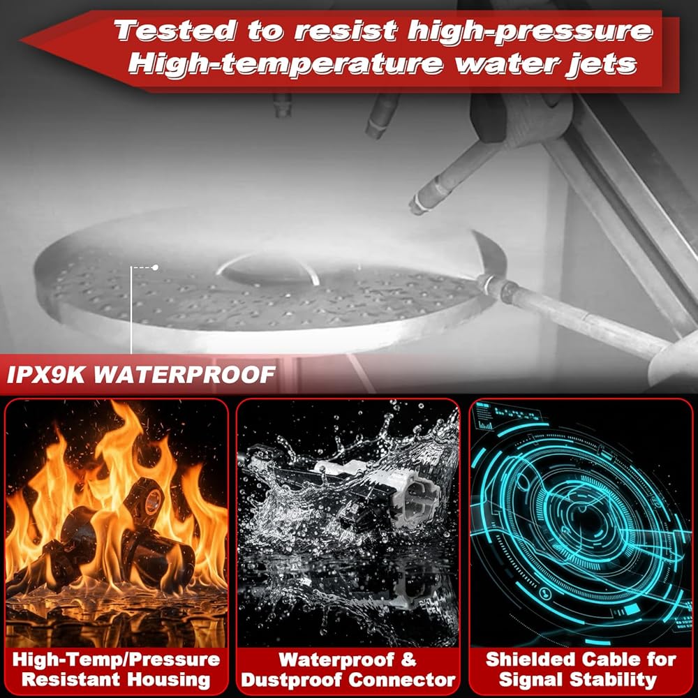 【Excellent Waterproof Protection – IPX9K Tested】Speed Sensor passed high-pressure, high-temperature water jet tests under IPX9K standards. Reliable in rain, mud, or car wash conditions.