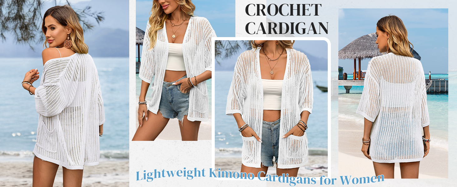 Lightweight Material: The Crochet Cardigan is made of lightweight, breathable and stretchy knitted material, soft and comfortable wear in Spring / Summer / Autumn.