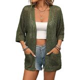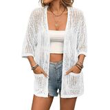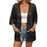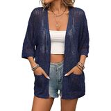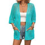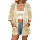 Crochet mixed bohe casual style, natural drape,fashionable and casual beach swim coverup ,Unique 3/4 Sleeve Open Front Cardigan Sweaters,plus size cardigans for women.Spring, summer and autumn essential basic style