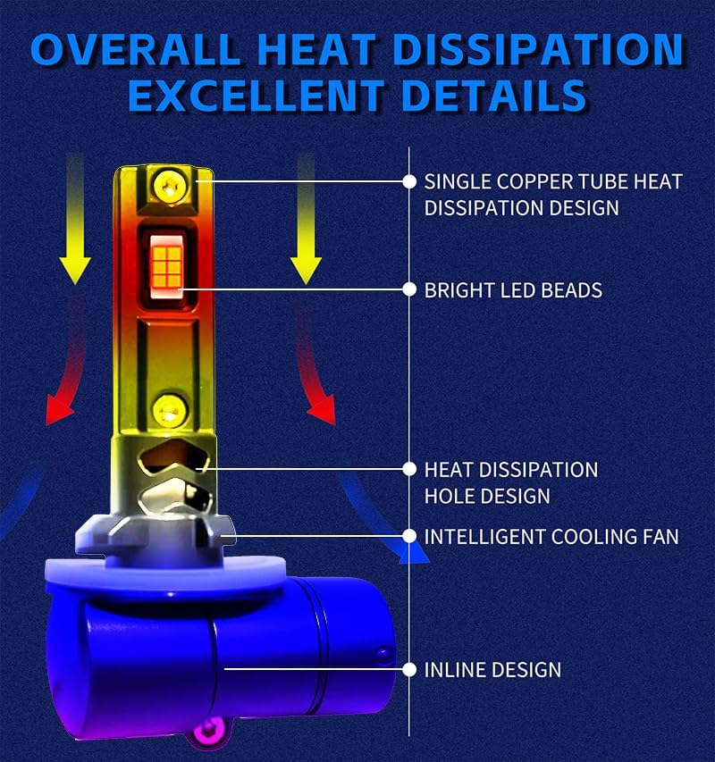 Up to 50,000 hours lifespan:The bulb's built-in constant current IC driver can stabilize the current input, effectively protect the circuit and improve performance. It has accurate decoding function, more versatility, The 20,000 RPM super cooling fan, this efficient cooling system and IP68 waterproof rating and premium dust protection technology make the lamp performance more stable and longer service life, 85% longer life than halogen bulbs.