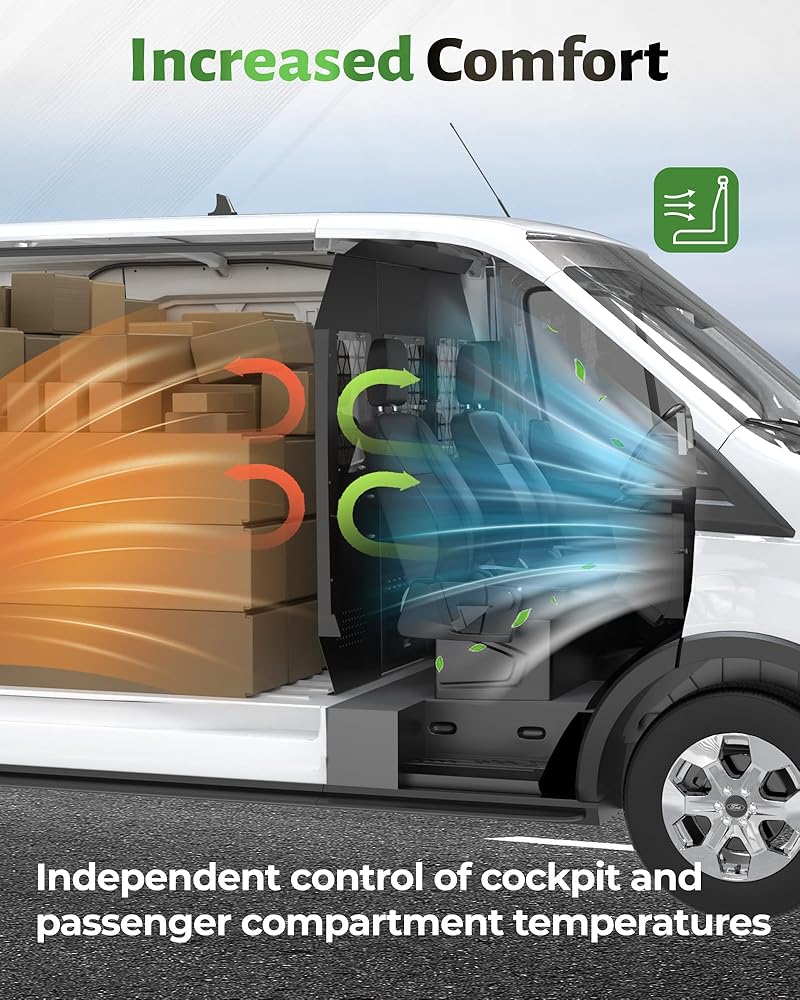 Improved Comfort: For long drives or multiple passengers,the cargo van partition ensures that the temperature in the cockpit and passenger compartment is controlled independently of each other,providing different temperature environments in different areas and reducing the load on the air-conditioning system