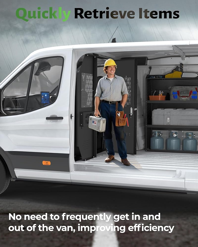 Higher Safety: The van safety partition for ford transit 150 250 350 high-roof full size van is made of heavy-duty steel with unique folded edges to resist large impacts and prevent bulk cargo from shifting into the cab area during travel; providing a solid steel Provides a strong steel barrier to better protect the driver