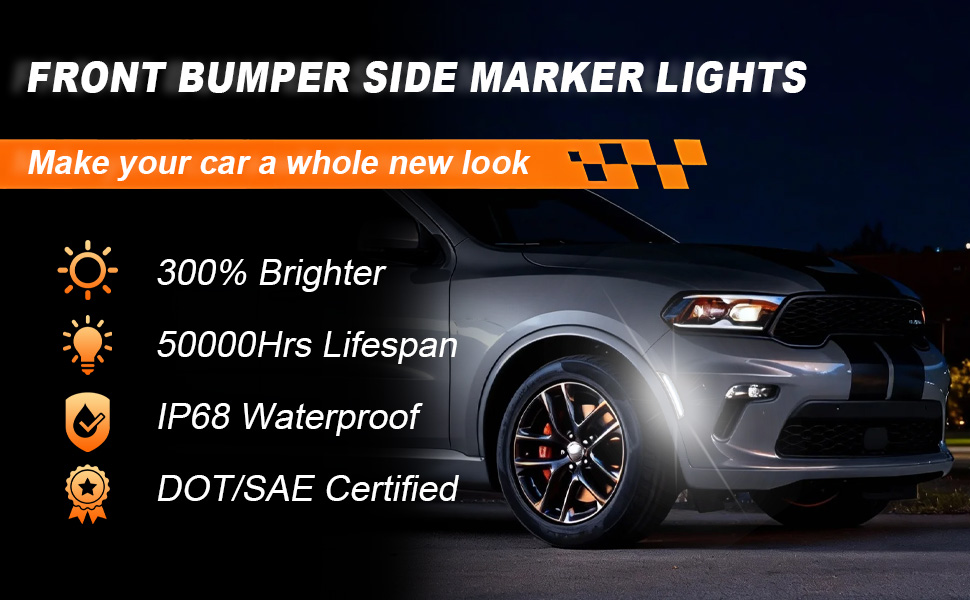 【Perfect Fit】Direct replacement LED Front bumper fender side marker lights designed SPECIFICALLY for Dodge Durango 2021 2022 2023 2024 2025 (Please check your vehicle model before purchase this light) . Reference OEM part number#: 68476818AA 68476819AA.✅ Guaranteed fitment