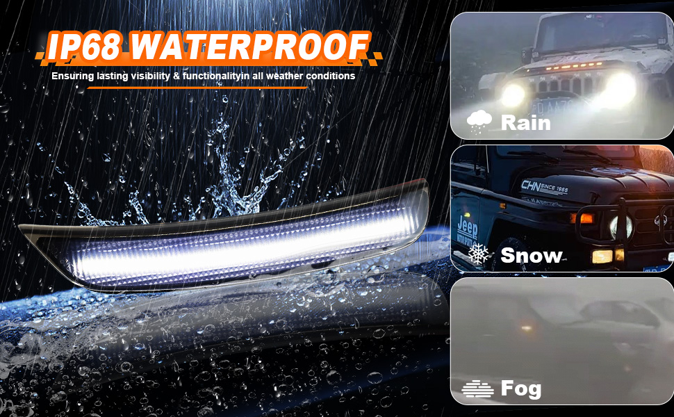 【IP67 Waterproof & All-Weather Durable】Built to withstand the elements! Rated **IP67 waterproof** to resist rain, snow, car washes, and dust ingress. Constructed with UV-resistant materials to **prevent fading and cracking** for long-lasting performance in any weather.