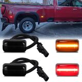 LED Dually Fender Side Marker Lights For 2015-2025 Chevy Silverado GMC Sierra 2500HD 3500HD 3-rows Amber & Red Dual Rear Wheel Truck Bed Marker Lamps, Smoked Lens 4PCS