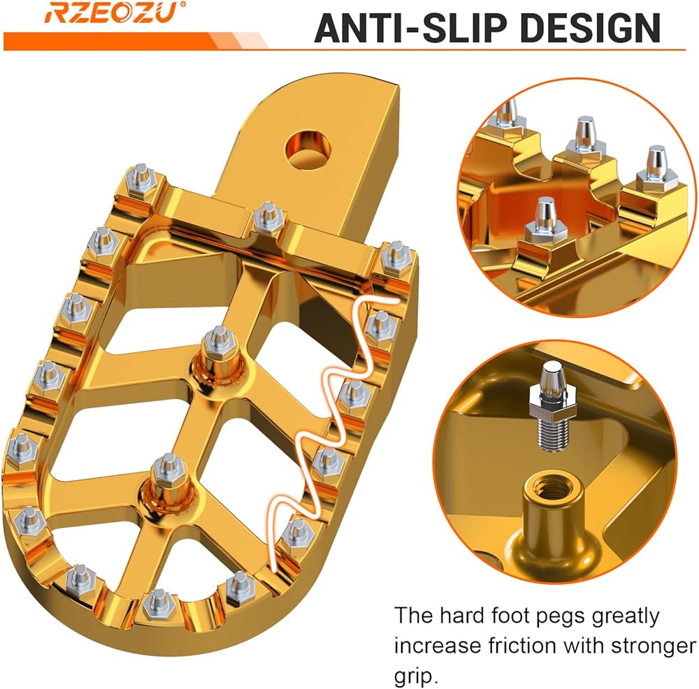• More Grip: The foot pegs feature an aggressive knurled pattern that provides excellent traction and grip, ensuring secure footing and safety