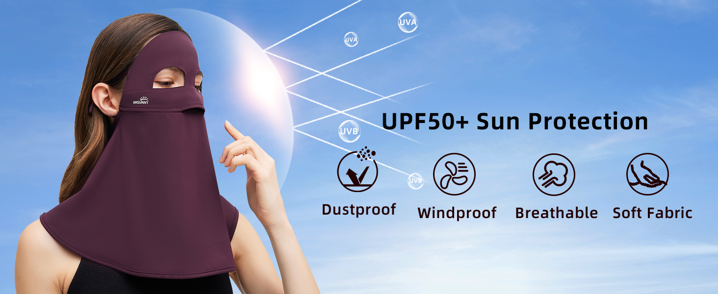 PROFESSIONAL UV PROTECTION UPF 50+ FACE MASK---This full face cover is made of high-tech fabric, which can effectively block 99% of UV rays and can protect your skin away from damage. It conducted multiple UV tests in OH! Lab, and won several certificates. When you wear it, you can walking and exercise freely in the sun.