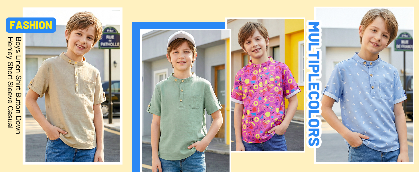 Fabric: This boys linen shirts made from great fabric, lightweight, breathable and soft touch, do not shrink and fade, moisture-wicking