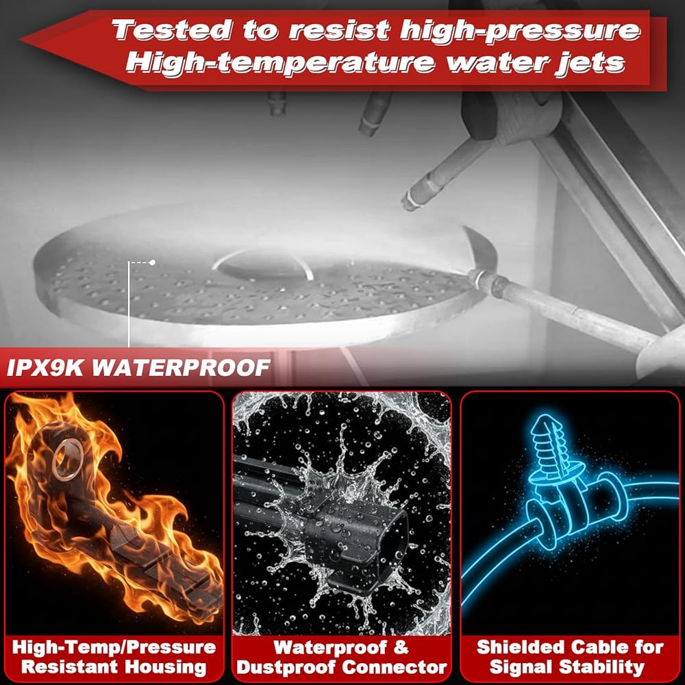 【Excellent Waterproof Protection – IPX9K Tested】Speed Sensor passed high-pressure, high-temperature water jet tests under IPX9K standards. Reliable in rain, mud, or car wash conditions.