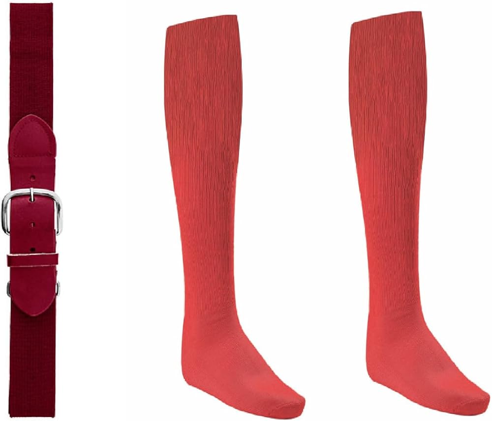 1 Quantity comes with 1 belt and 1 pair of socks. Small and Medium sizes come with a Youth Belt. Large and XL sizes come with an Adult belt. The belt is comfortable, adjustable elastic uniform belt with a tough leather tab with four notches for an adjustable fit. Socks are approximately 9.5" long from the ankle. Sock size is Small (Shoe Size 6.5-8.5), Medium (Shoe Size 8.5-10), Large (Shoe Size 10-13), XL (Shoe Size 13-15). All combos match in color according to the manufacture but may vary slightly in color.