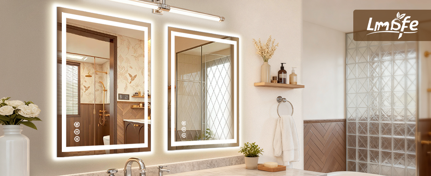 【Dual Lighting LED Bathroom Mirror】Elevate your grooming routine with our Lmsedf bathroom mirror with lights. Featuring both front and backlit LED strips, Lmsedf mirror for bathroom use provides 360° shadow-free lighting—ideal for makeup application or shaving. With 95+ CRI technology, Lmsedf LED bathroom mirror with lights simulates natural daylight, ensuring accurate skin tones without distortion.