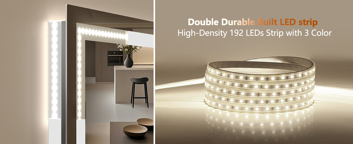 【Shatterproof & Safe for Bathroom Use】Crafted from high-quality tempered glass, Lmsedf LED bathroom mirror is both impact-resistant and shatterproof, ensuring lasting durability and safety for your entire family. It's designed specifically as a safe mirror for bathroom environments, giving you peace of mind.