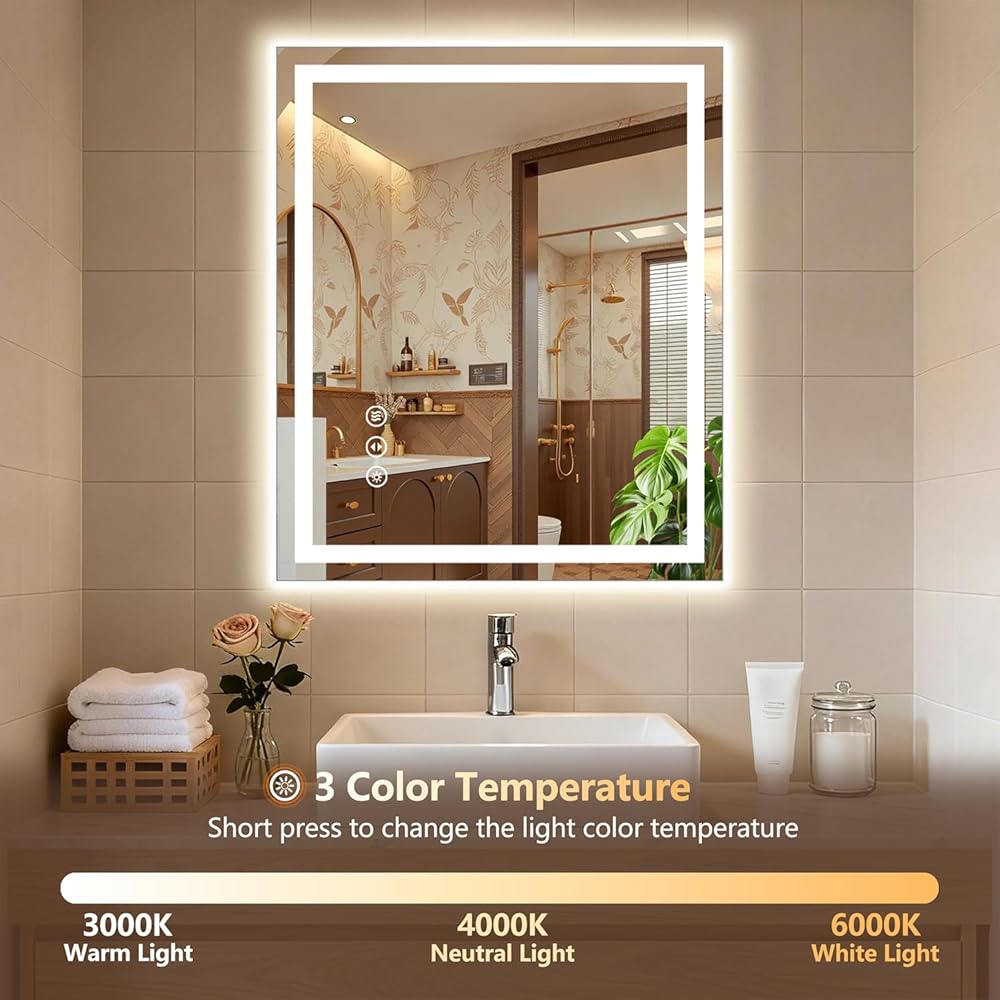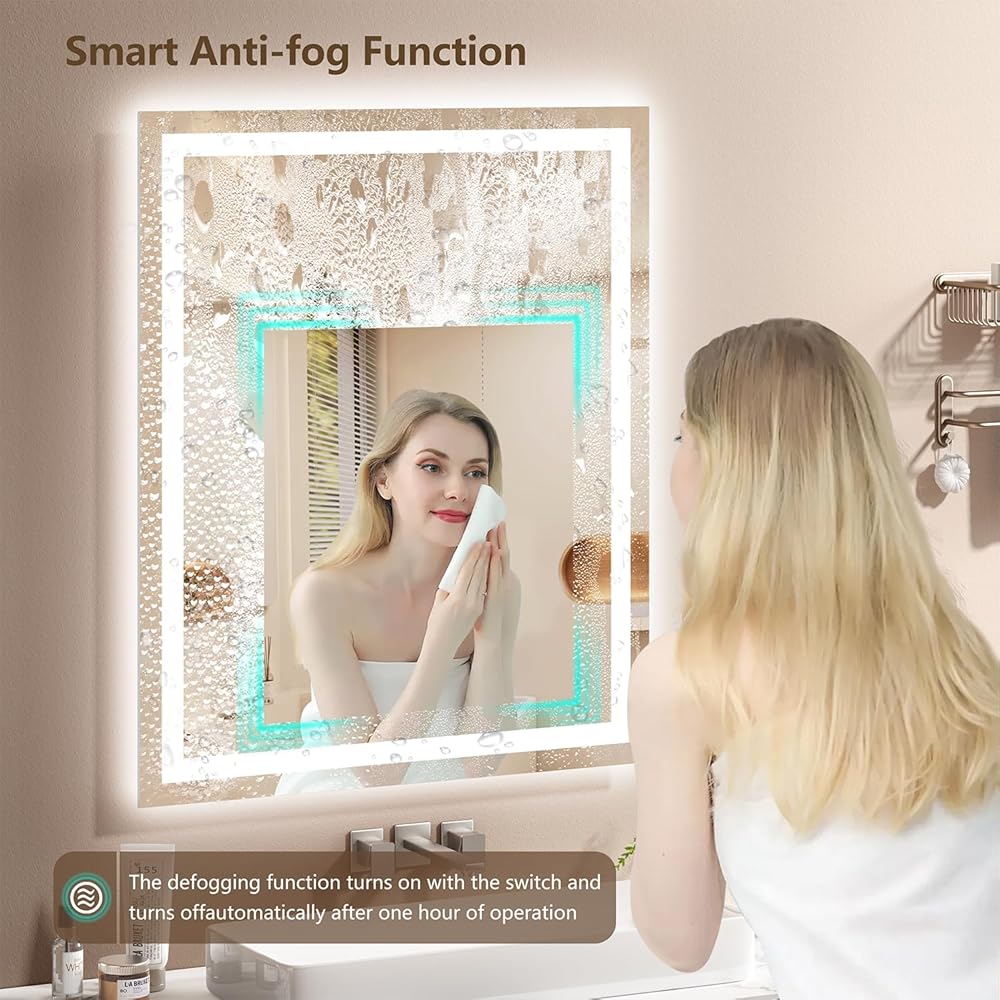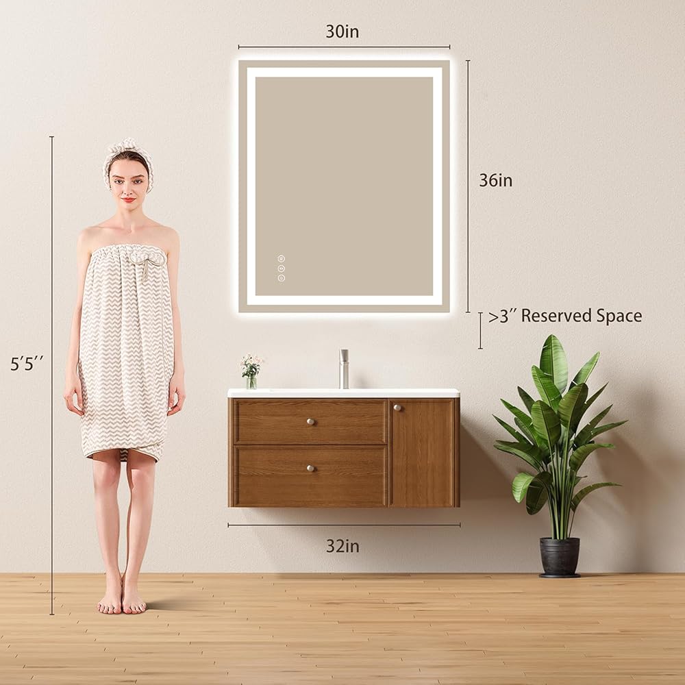 30x36 LED Bathroom Mirror with Lights - Dimmable, Anti-Fog, 3 Color Backlit & Front Lit Mirror for Bathroom, Shatter-Proof Tempered Glass, Easy Installation