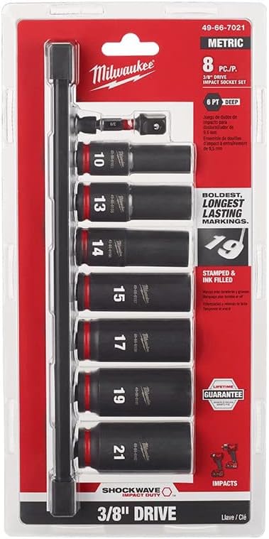 - 8PC SHOCKWAVE Impact Duty 3/8" Drive Metric Deep 6 Point Socket Set