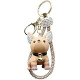 Upgrade your daily essentials with this charming bulldog-shaped keychain and bag charm— a dual-purpose accessory that merges practicality with stylish flair! Crafted as both a functional key organizer and a eye-catching bag decor, its adorable bulldog figure brings a playful, fashionable touch to any item you attach it to. Thoughtful details make this accessory stand out: the bulldog's ears and matching strap feature sparkling embellishments, while a small bell on the figurine's collar adds a delightful, whimsical accent. It's built to last too— the bulldog figurine uses wear-resistant material, paired with a sturdy embellished strap and durable metal hardware that holds up to daily use. Perfect for clipping onto keys, handbags, backpacks, or even luggage, this accessory keeps your items easy to locate while showcasing your unique style. The comfortable embellished strap offers a secure grip, and the metal clasp allows for quick attachment or removal whenever you need it. Whether for personal use or as a lovely gift for someone who loves cute, stylish accessories, this bulldog keychain/bag charm balances utility with irresistible charm!