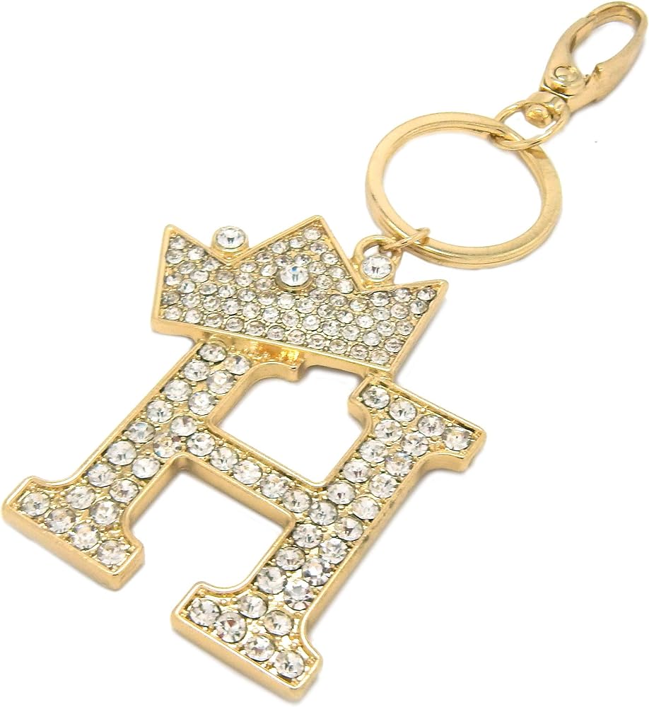 Add a touch of glamour to your everyday accessories with this dazzling initial keychain. Crafted with meticulous attention to detail, this gold-toned metal keychain features stunning crystal embellishments that catch and reflect light beautifully. The letter design incorporates an elegant crown motif, making it a perfect statement piece for your keys or bag charm. The sturdy lobster clasp ensures secure attachment, while the quick-release feature offers convenient handling. Measuring approximately 2.17 inches in length and 2.56 inches in width, this unisex accessory combines functionality with sophisticated style. The high-quality metal construction and rhodium color plating provide durability and lasting shine. Whether attached to your handbag, backpack, or keys, this eye-catching initial keychain adds a personalized touch to your everyday carry items. Each crystal is precisely set to create a brilliant, sparkling effect that makes this accessory stand out.