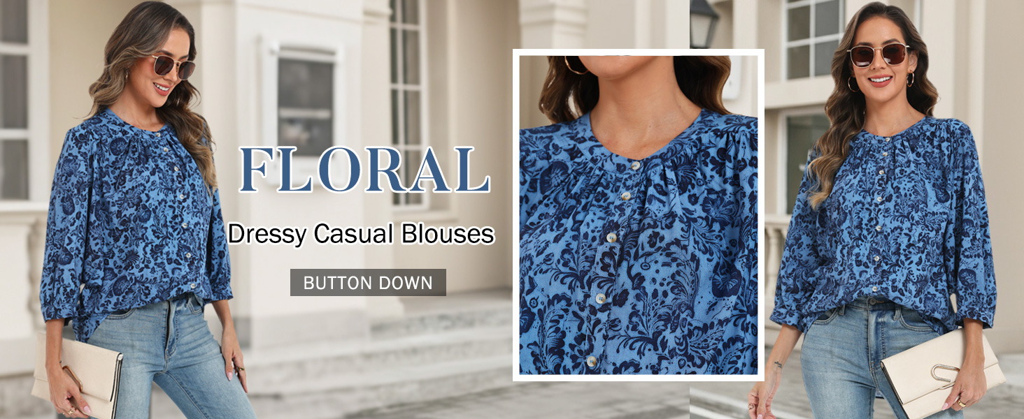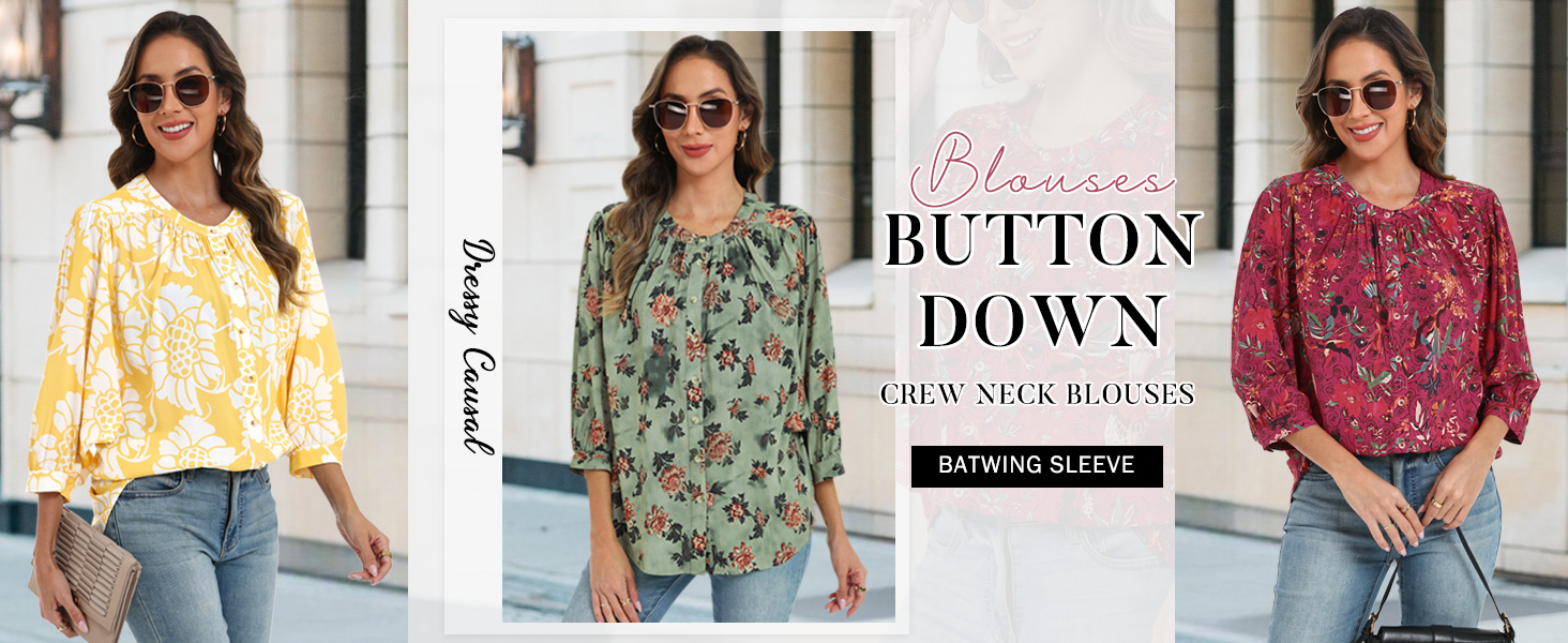 Features: Batwing 3/4 sleeve blouses;button down shirts for women feature v neck; chic floral print tops; boho tops; womens blouse dressy casual,work tops shirts for women,giving it a stylish yet relaxed look,suitable for summer,spring,fall,winter