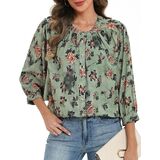 Design: The elegant women 3/4 sleeve blouse with the v-neckline adds a touch of sophistication. The puffy sleeves and floral design bring a trendy and feminine flair to this classic boho tops,perfect for any casual or semi-formal occasion