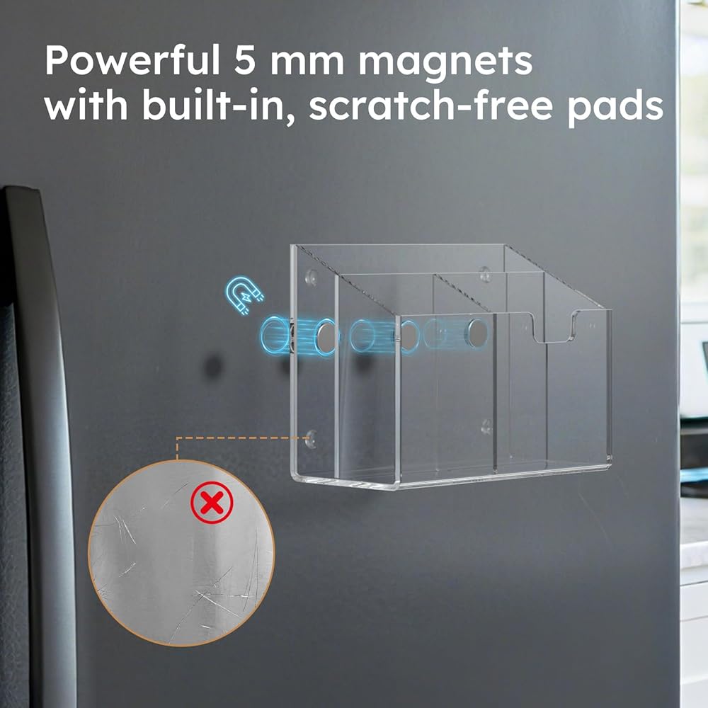 【Strong Hold, No-Scratch Promise】Designed to stay put without damage. Equipped with three strong magnets backed by built-in non-slip pads, this marker organizer offers a secure hold while guaranteeing absolute protection against surface scratches on appliances and furniture.