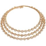 This rhinestone choker necklace features multiple interwoven chains, each uniformly set with imitation diamonds. The layered design creates a richly textured effect, delivering exceptional visual depth and brilliance.