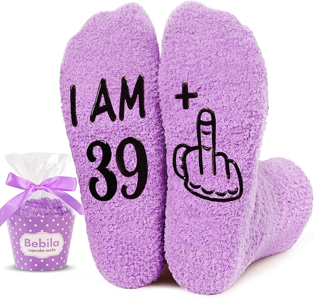 Bebila Birthday Gifts for Women Funny Socks for 30 40 50 60 70 Year Old Woman Birthday Gifts for Mom Sister Wife Friends (US, Alpha, One Size, Regular, Regular, I Am 40 Pink)